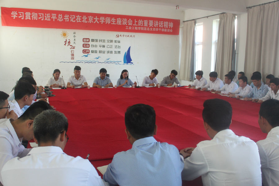 团学干部座谈会上, 7名团学干部代表围绕学习习近平总书记重要讲话精神的体会和感悟分别发言。大家表示,青年员工要爱国,要时刻感恩祖国的培育,感恩祖国创造了良好的学习与发展环境;青年员工要励志,做到志向远大勇担当,顽强拼搏永奋斗;青年员工要求真,夯实马克思主义理论功底,融会贯通,勇于实践,做坚定信仰者、积极传播者、模范践行者;青年员工要力行,脚踏实地去践行、去改变,在时代的机遇中实现中国梦。