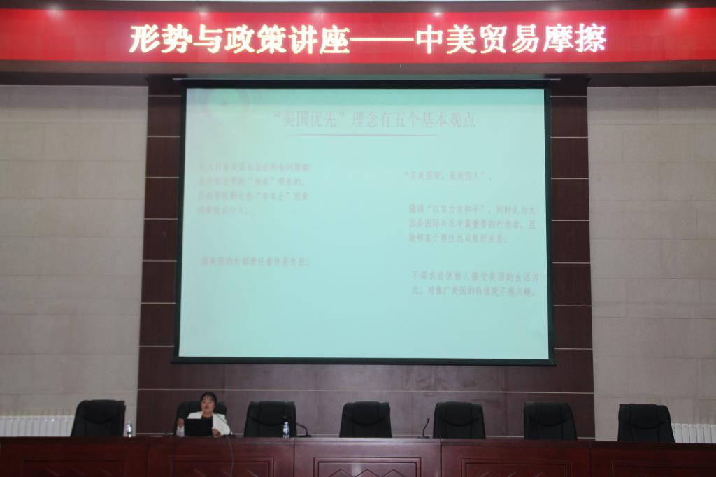 讲座主要围绕中美贸易摩擦这一热点,从中美贸易摩擦的来龙去脉、原因及影响以及该如何应对等三个方面进行讲授。以PPT和影像视频的形式,形象直观地给员工呈现了中美贸易摩擦的相关知识,让员工以更加客观理性的态度去认识中美贸易摩擦,认识新时代国内外形势,认清世界和中国发展大势,开阔了视野。