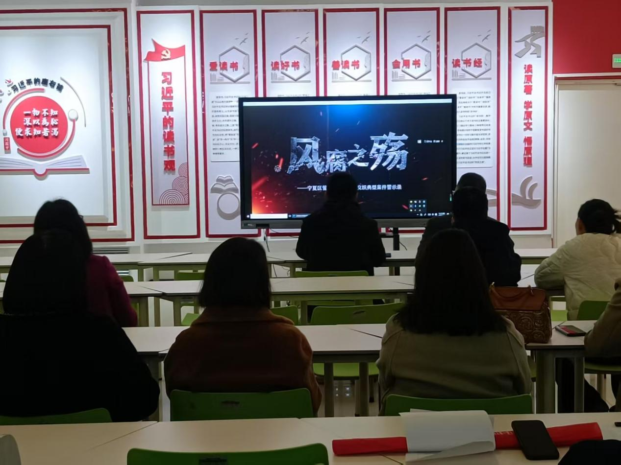 本次活动首先组织学习《习近平总书记关于党的建设的重要思想概论》绪论内容,随后,集中观看了自治区纪委监委制作的廉政警示教育片《风腐之殇》,通过一个个鲜活的案例,警示大家时刻保持清醒头脑,遵师德规范,守师德底线,筑牢拒腐防变的思想防线。