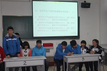 本次活动分为初赛和决赛两个环节。初赛采取闭卷笔试的形式,内容包括日常管理规定、违纪处分办法、奖助学金评定、文明宿舍评选等内容,选出每班成绩前4名的同学参加决赛。决赛采取知识问答的形式,分为填空必答题、选择必答题和风险题三部分,以不同的形式来考验员工的综合能力。最终14煤化班杨淑香以93分获个人成绩第一名,14设备班张生花、14应化班孟斐并列第二名,14煤化班马国扬第三名。14煤化班获得团体成绩第一名。