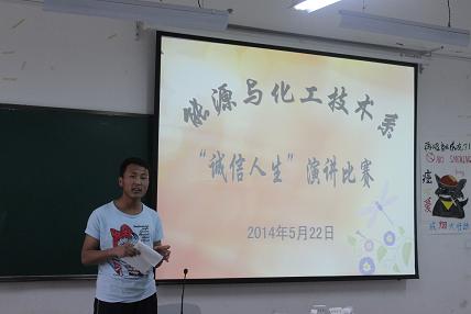 2014年5月22日下午6:00,能源与化工技术系学习实践部主办的以“诚信人生”为主题的演讲比赛在工科楼321教室拉开序幕。