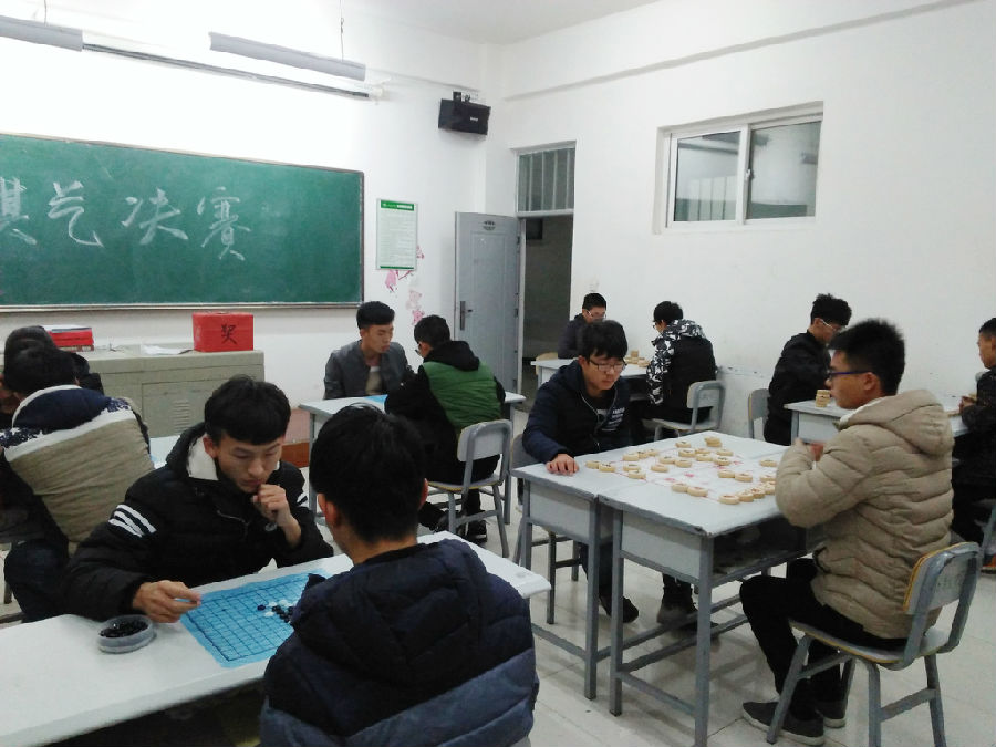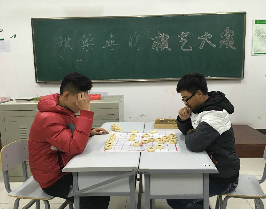 本次比赛共设置中国象棋、五子棋、跳棋和军棋四个项目,采取分组淘汰晋级制的方式进行。比赛中,选手们本着“切磋棋艺、以棋会友”的原则,发挥出“友谊第一、比赛第二”的竞技精神。当对弈陷入僵局时,选手不慌不忙,沉着应对;当遭遇平局时,选手深思熟虑,妥善处理;当手握主动时,选手不骄不躁,保持清醒。比赛现场的气氛紧张而激烈,围观的同学认真关注着棋盘上的形势,心情也随着棋子的移动而起起落落。经过几番激烈的角逐,最终常涛、宁佳辉、杨超、张荣新四位同学分别摘得了象棋、五子棋、跳棋和军棋的冠军。