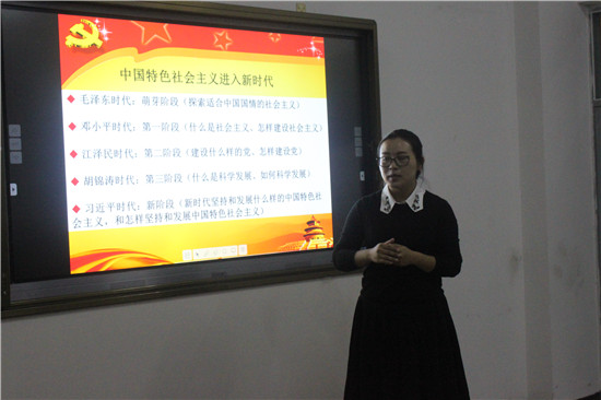 马晓娟老师以新时代、新使命为关键词展开宣讲。从正确认识世界和中国发展大势,正确认识中国特色和国际比较,正确认识时代责任和历史使命,正确认识远大抱负和脚踏实地四个方面,向团员青年生动阐释了“新时代”是一个人民生活更加美好的时代,是一个社会发展更加健康的时代,是一个国家力量更加强大的时代,是一个人类文明更加广泛的时代。她激励团员青年在以习近平同志为核心的党中央坚强领导下,在习近平新时代中国特色社会主义思想的正确指引下,团结一心,众志成城,砥砺奋进,开拓创新,不忘初心,撸起袖子加油干。