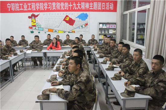 宋承宏同学说:“中国进入了新时代,5年来党和国家事业取得了历史性成就和历史性变革,我们每个人都应该认真学习党的十九大报告和党章,将学习党的十九大精神作为政治必修课。作为一名宁职的士官生,在宁职这个大家庭里始终保持先进性,发挥好模范带头作用。”