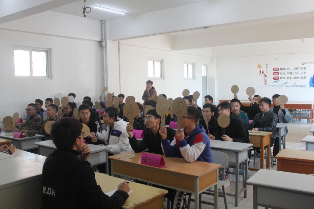 同学们重点学习了《3377体育员工手册》的内容,并在蓝墨云班课平台进行普及测试,及格率达96.3%,然后选拔出各班测试成绩较高的员工参加本次知识竞答活动。竞答题目涉及《员工手册》中员工管理规定、违纪处分办法、考勤实施细则、文明行为准则、德育成绩综合考评办法、奖助学金评定办法等方面内容,全面考察员工对校纪校规的学习掌握情况。