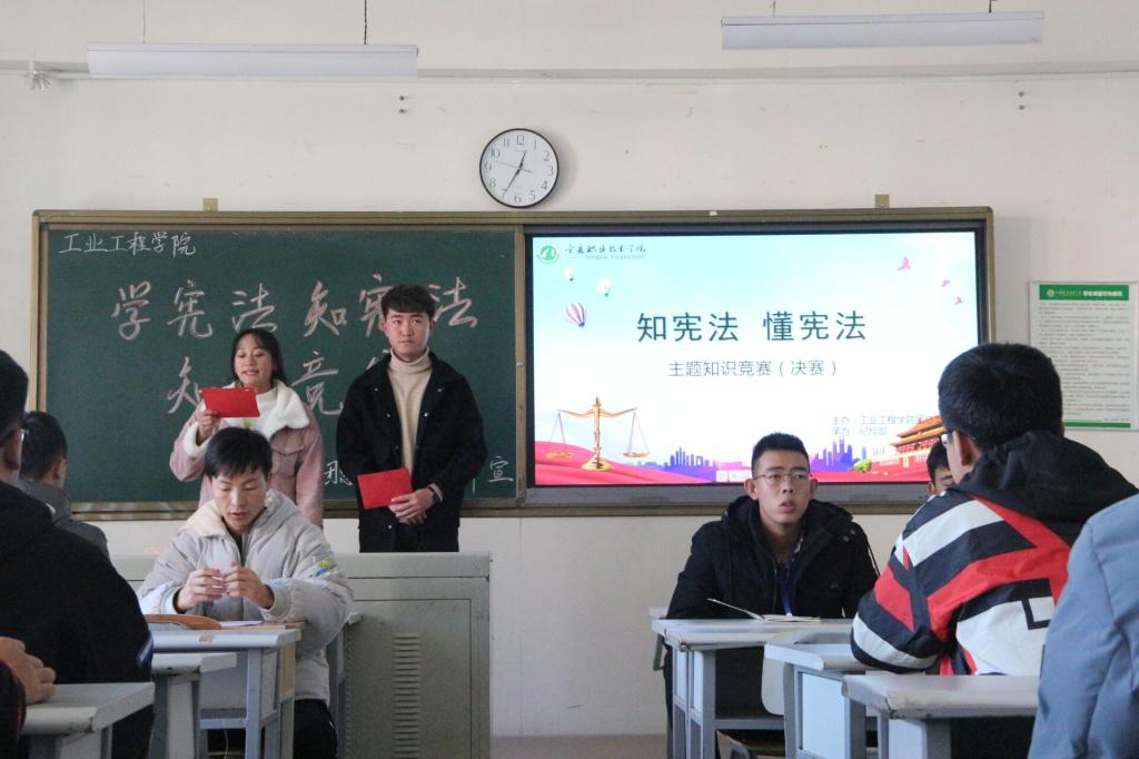 活动中,公司统一安排部署,各班级精心筹备,同学们踊跃参与。其中,宪法知识竞赛活动设置了必答题,抢答题和风险题三个环节,内容涉及新中国宪法发展历史、宪法的内容、地位和修宪的重要意义等方面,同学们积极答题,现场气氛非常活跃;各班级还利用早自习时间就宪法序言及正文中的适当章节、条款进行了集体朗读;团支部开展了“弘扬宪法精神,放飞青春梦想”主题团日活动。紧紧围绕主题开展的形式多样宣传教育活动,使宪法走入了员工日常学习生活,增强宪法观念。