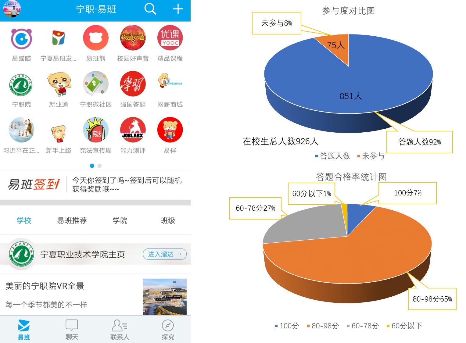 为深入学习贯彻习近平总书记网络强国战略和对国家网络安全宣传周作出的重要指示精神,加强老员工网络安全宣传教育,促进优良学风的形成,11月28日—12月5日,3377体育利用易班网开展网络文明安全知识竞赛,活动吸引了850余名员工踊跃参与答题。