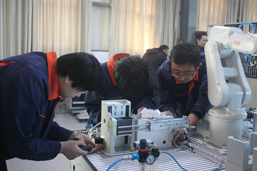 11月10日上午,工业机器人技术应用项目技能比赛在公司工科实训基地拉开帷幕。该项目有6名专业教师参加,选手需要在三个小时内完成手机装配自动化生产线加盖单元手机盖上料机构的装调,和机器人抓取手机盖的点示教与运行竞赛项目。副董事长李晓延及教务处部门负责人观摩了本次比赛。
