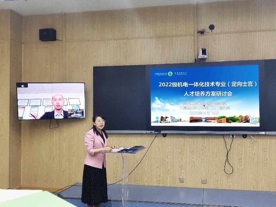 首先,机械教研室主任蔡春林介绍了机电一体化技术专业(定向士官)人才培养方案的基本情况,重点介绍了专业定位、培养目标及课程体系构建等情况。