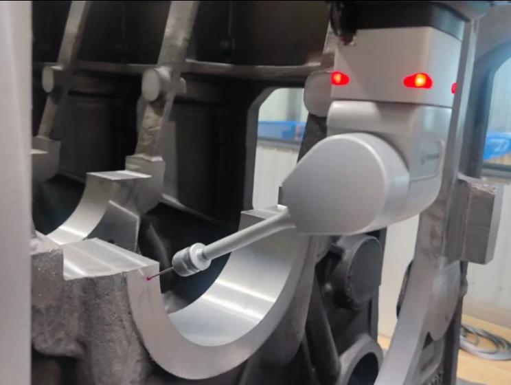 本次课程以企业铸造件——海上风力发电机座精密检测为任务,分为理论讲授、实操演练和技术交流三个环节,实施做中学、学中做。首先,企业导师马志强向同学们讲授了龙门式三坐标测量机的测量原理、结构组成。随后,实操演练了三坐标测量机的检测操作流程。在导师的引导下,同学们观察到机器的探头在三维空间内自由移动,准确地捕捉到零件表面的点位信息。通过这些点的数据采集,计算机软件能够迅速构建出零件的三维模型,并计算出各项尺寸参数。这种高精度的测量方式使员工们体会到了现代企业的新技术、新工艺、新方法,大开眼界,也让他们对未来可能从事的工作有了更加具体的期待。
