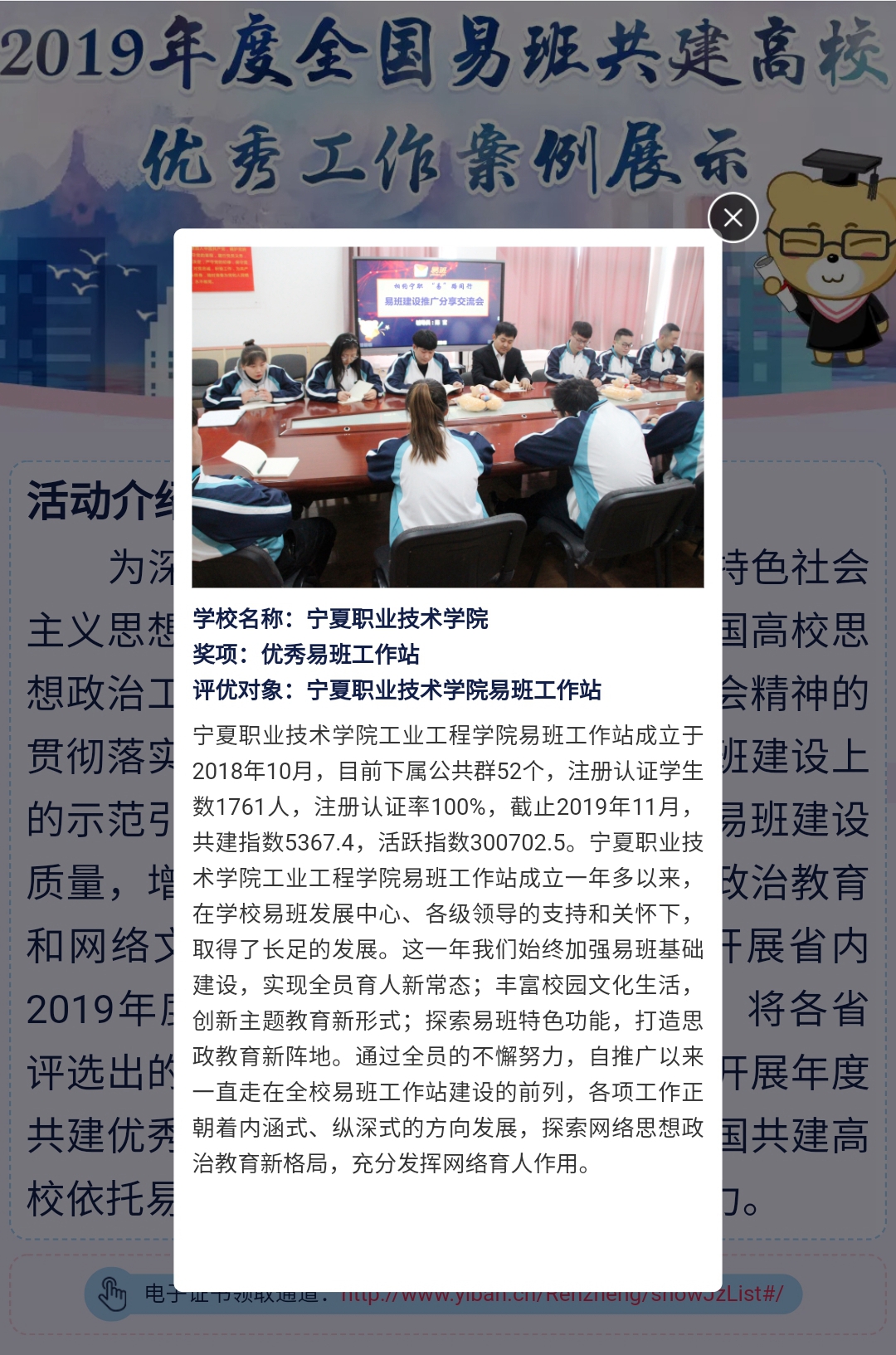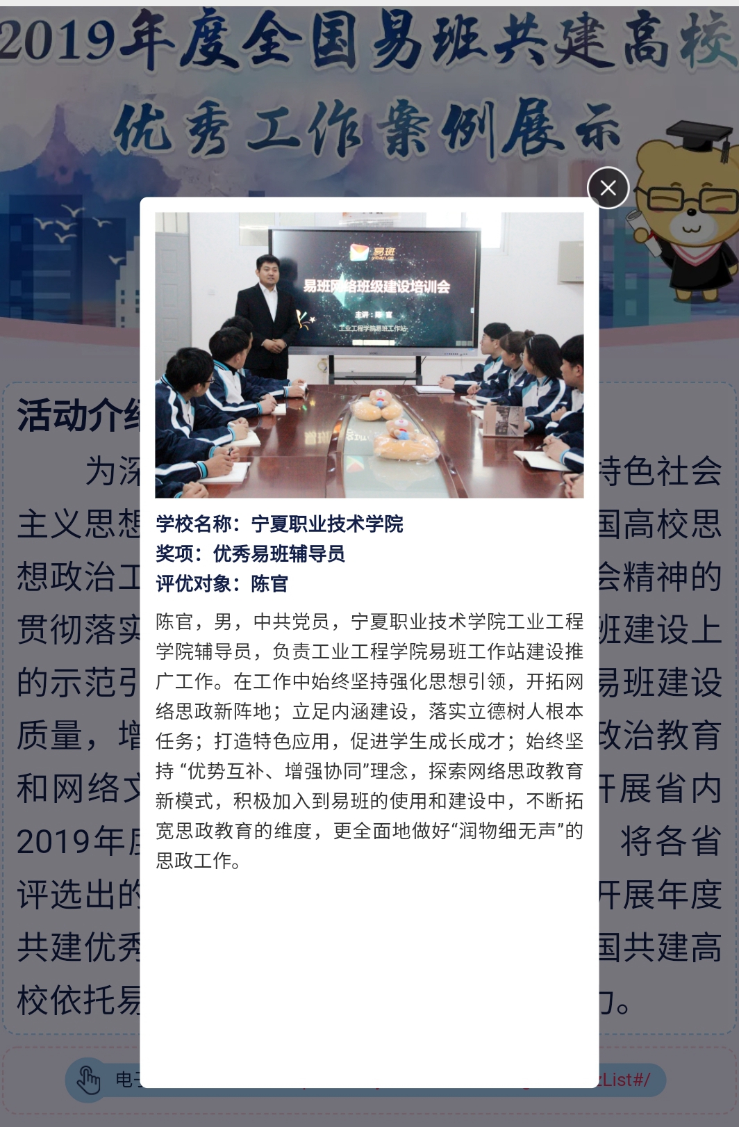 近日,教育部全国易班发展中心公布“2019年度全国易班共建高校优秀工作案例展示”评选结果。公司易班建设工作斩获多个奖项,其中,3377体育易班工作站荣获“自治区优秀易班工作站”,3377体育辅导员陈官荣获“自治区优秀易班辅导员”荣誉称号。