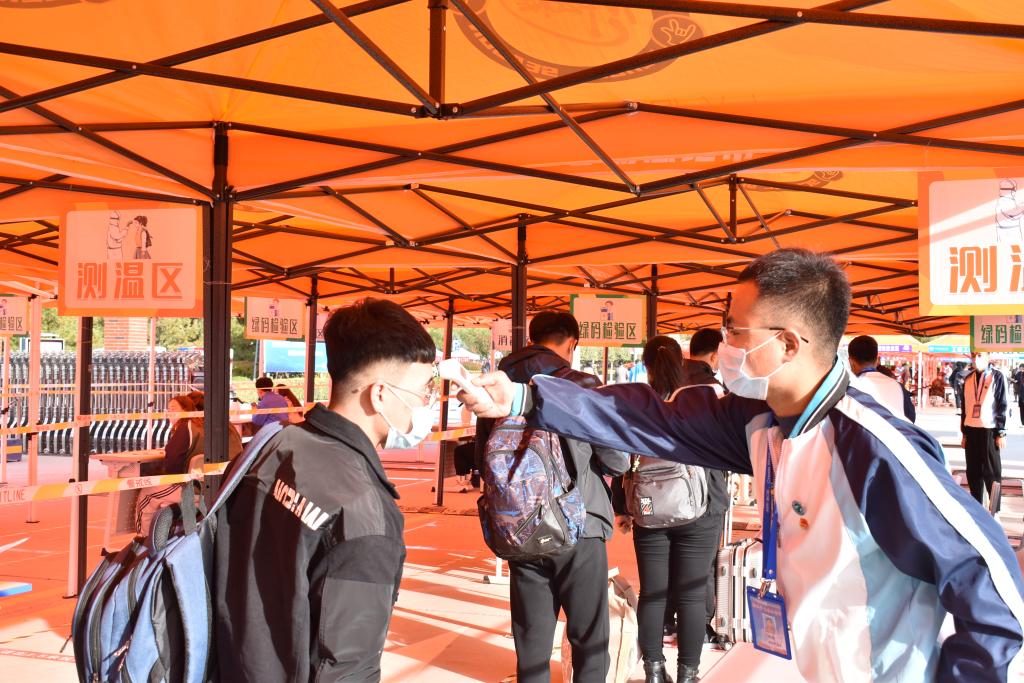 由于还在疫情期间,公司处于半封闭状态,志愿者和相关工作人员组织新生有序排好,保持距离,间隔一米五,挨个测温,对每个同学以及他们的行李消毒,不遗漏任何环节!在疫情的特殊背景下,家长无法陪伴进入校园,但是我们为家长们专门安排了休息区,让一路奔波的爸爸妈妈们歇歇脚。