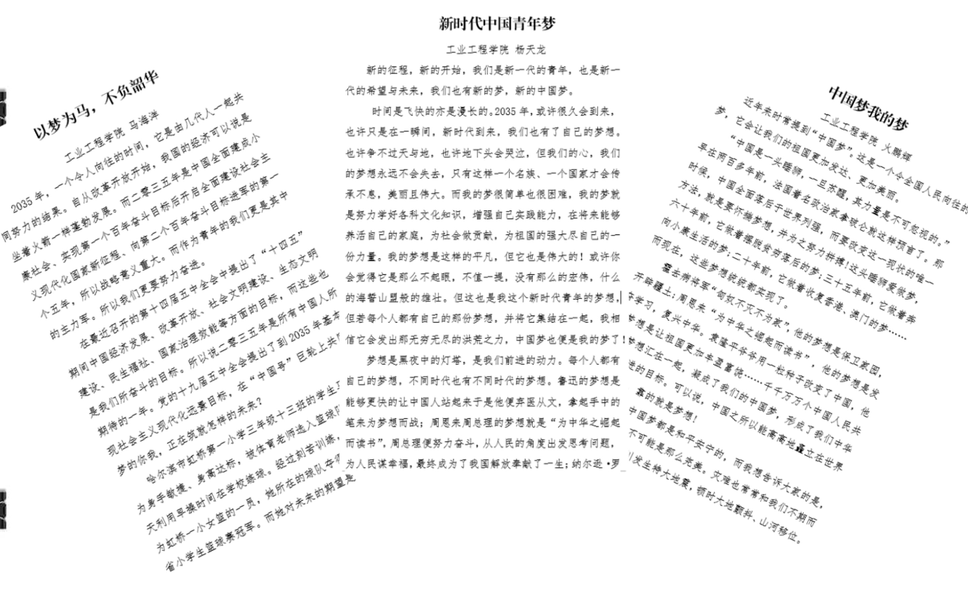 在“2035中国梦 我的梦”征文比赛中,同学们挥毫洒墨,文采斐然,将一腔爱国情写入实现中国梦的伟大征程中。
