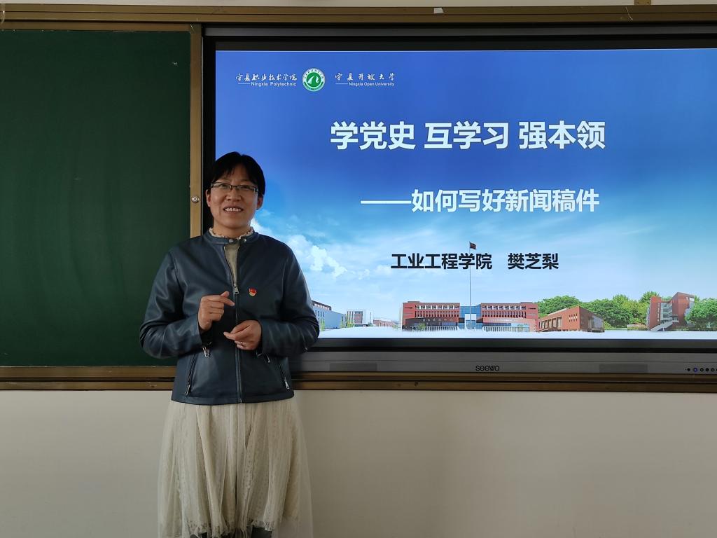 此次活动特邀公司辅导员兼思政课教师樊芝梨老师。她以此次党史学习教育为契机,针对师生写作中出现的主要问题,结合新闻稿件实例,图文并茂的讲解了《如何写好新闻稿件》的有关理论及具体写作方法。轻松的授课环境、浓厚的学习氛围让参与活动的师生意犹未尽,收获颇丰。