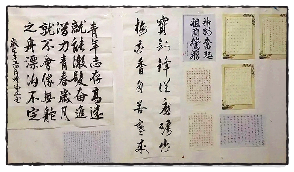书香飘逸满校园,翰墨浓情颂党恩。一幅幅书画作品主题鲜明,彰显着同学们的艺术素养和才华,展现了同学们积极向上的精神风貌,充分反映了同学们对党和国家的热爱之情。