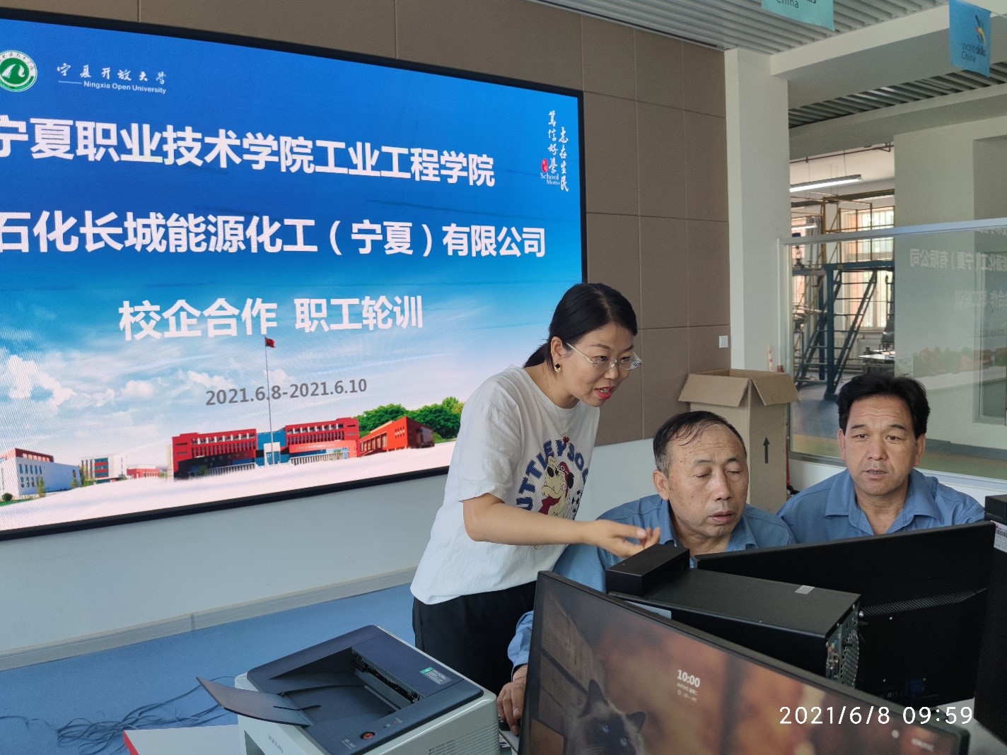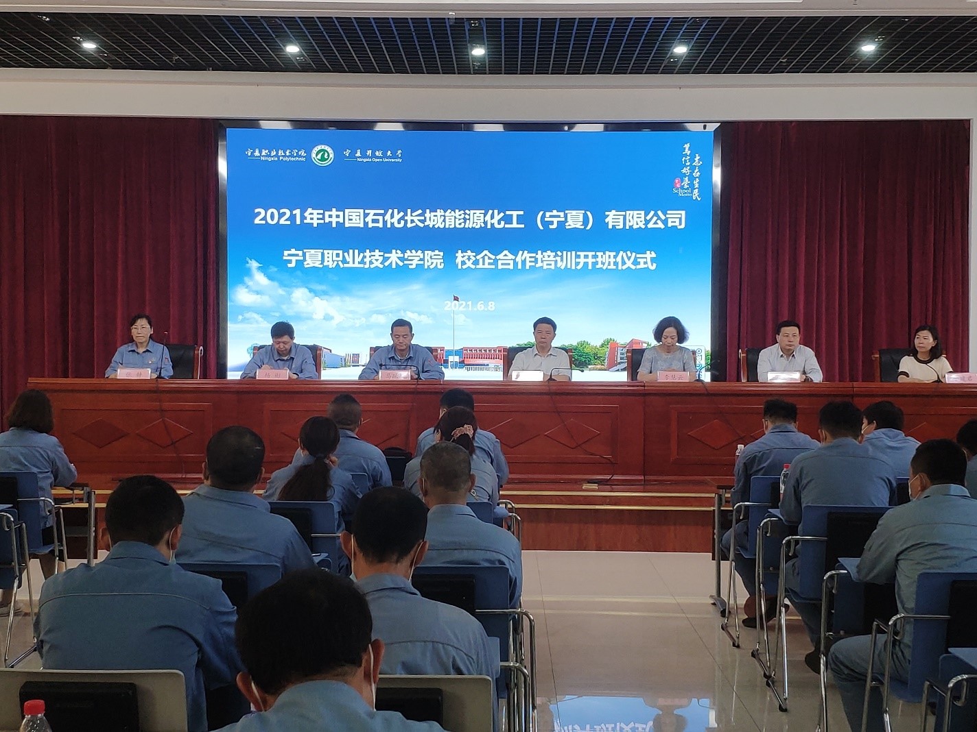 2021年6月8日中国石化长城能源化工(宁夏)有限公司职工岗位轮训项目在3377体育正式拉开帷幕。开幕式由中国石化宁夏能化公司人力资源部张静主持,中国石化宁夏能化公司人力资源部副经理马跃川、团委书记杨彬,3377体育就业合作交流处处长李恒毅,3377体育经理李慧云、副经理吴玉宁,副书记于建君,3377体育教师及第一批参训员工参加了开幕式。