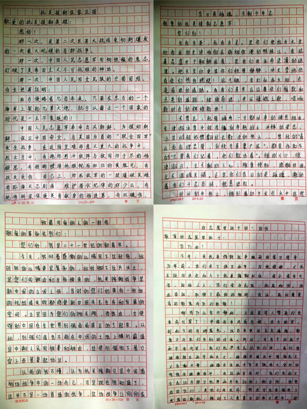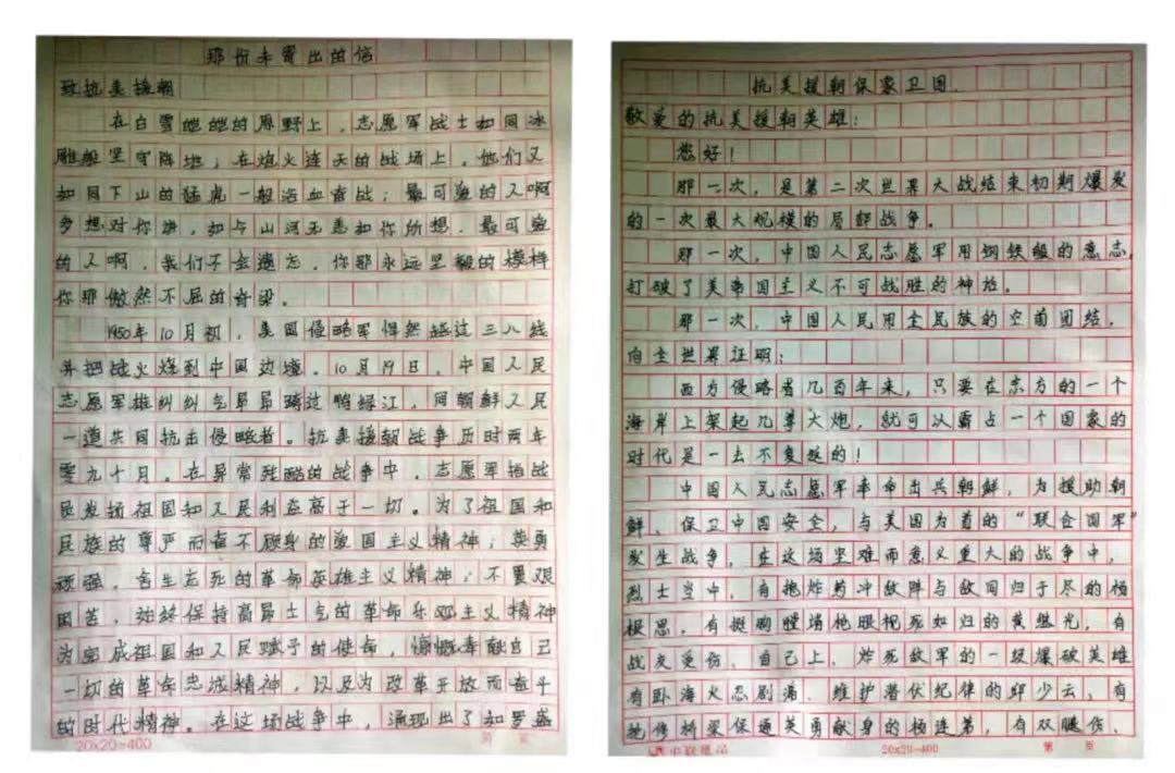 同学们展信提笔,表达着自己对抗美援朝志愿军战士们英雄事迹的崇拜和崇高精神的敬仰,与志愿军战士们进行着一场场跨时空的交流。