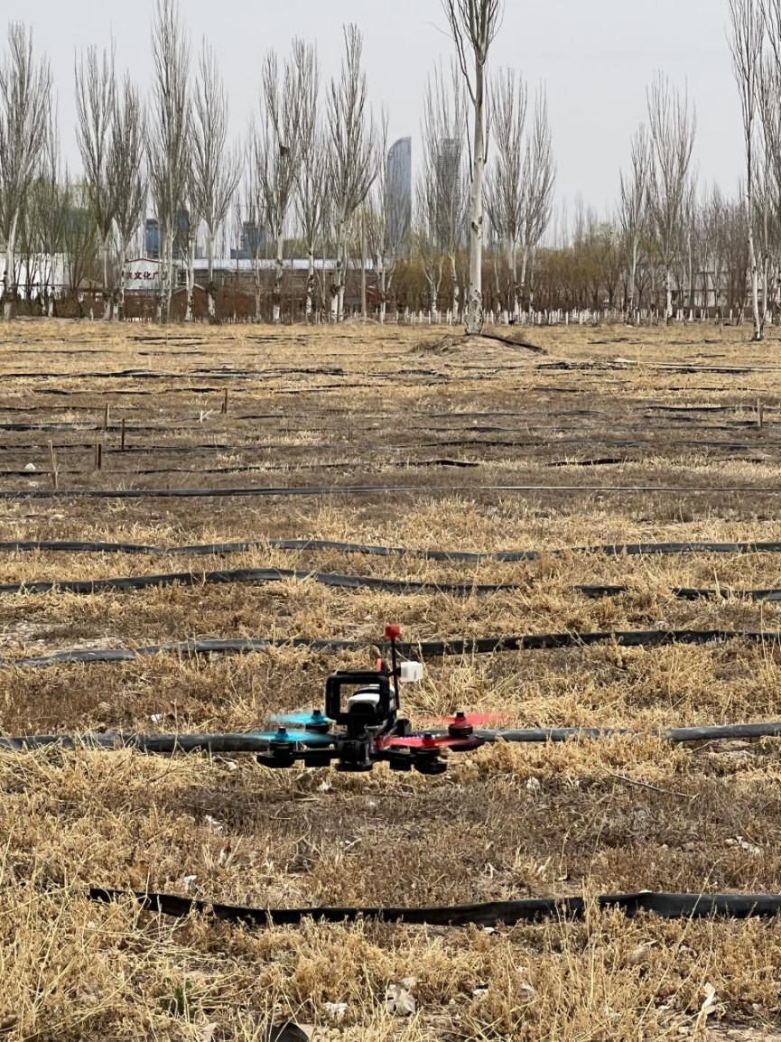 在穿越机表演环节,袁庆队长和士官生代表佩戴FPV第一视角眼镜、操作遥控器控制穿越机飞行,分别展现了穿越机的花式飞行、连续绕树、钻车窗等高难度动作,赢得阵阵掌声。