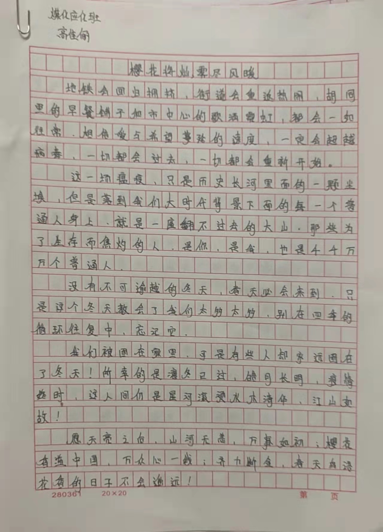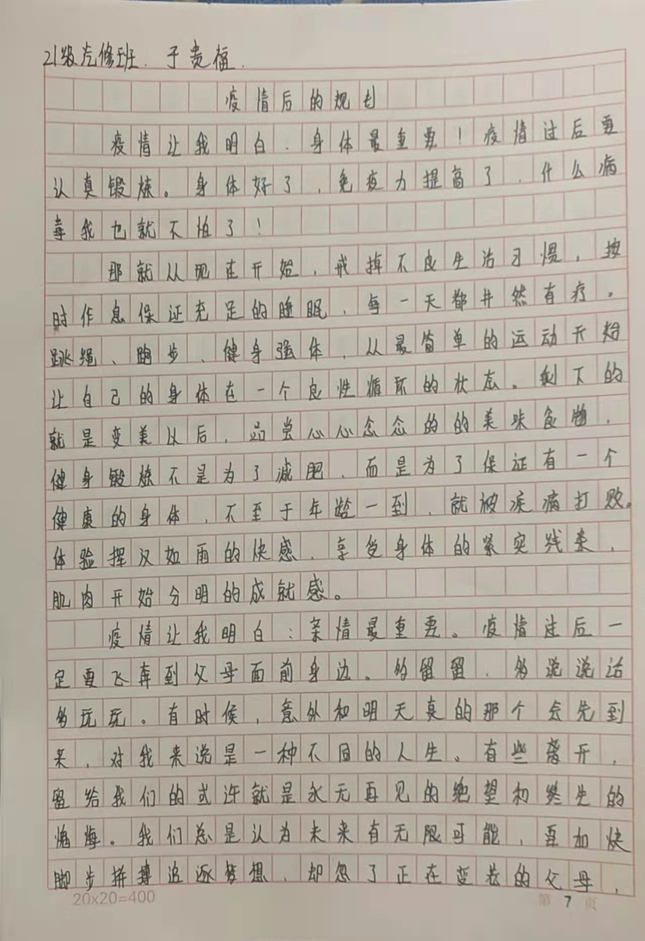 此次活动得到了全院员工的积极响应,正如人民日报上的一句话所说:“愿所有的美好,都将在疫情过后如约而至。”对于疫情结束后的生活,每位同学都有专属于自己的答案,同学们用文字描绘出了自己的向往。