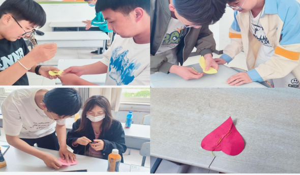 本次活动共分为四个环节,分别是“针线情”、心理案例分析、“红星闪闪”、困惑疏导。“针线情”是一项考验员工心理默契及配合度的心理游戏,要求两人一组,一人拿针一人拿线互相配合将线穿入针眼,随后用穿好的针线配合缝制裂开的心型卡片,限时完成的同学即可获得奖品。该游戏不仅考验了同学们的配合度,而且让同学们体会到团结合作的重要性。