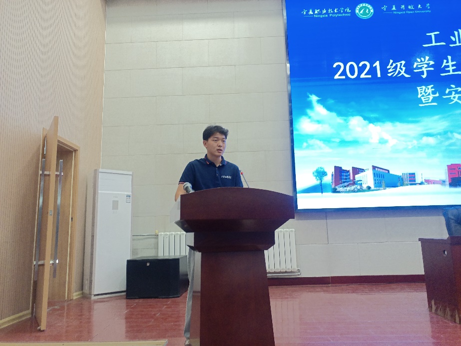 最后,岗位实习员工代表21机电1班王锦豪同学宣读了《安全承诺书》并做出郑重承诺。