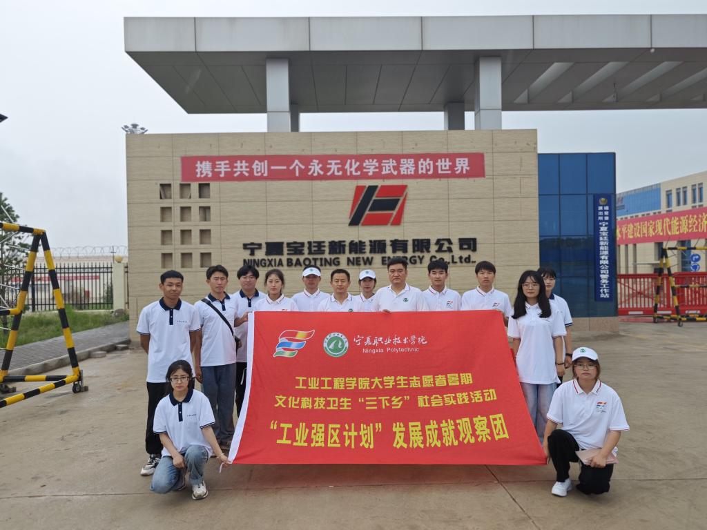 7月13日,本次暑期社会实践重点团队“工业强区”发展成就观察团指导老师和团队全体成员赴宁东工业基地参加了活动。活动团队首先来到了宁夏宝廷新能源有限公司,在做好安全防护的前提下,由企业负责人带领,团队成员参观了企业生产区域与加氢站。企业负责人为师生介绍企业的基本情况、发展历程,阐述安全生产的重要性以及规章制度,讲述企业取得的成就以及未来的发展方向等。在观看了企业发展纪录片后,更加深了同学们对企业的了解。