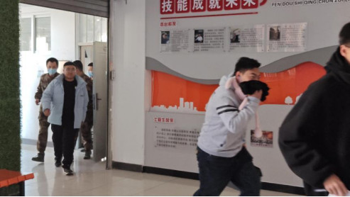 讲座结束后,宁夏七进消防知识宣传中心工作人员结合实训教学楼可能发生的火灾事故类型,在保证参演人员及设备设施安全的条件下,在竞新楼B段组织开展了应急疏散演练,共有200多名师生参与了应急疏散演练。