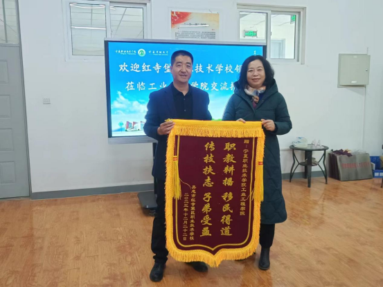红寺堡职业技术公司副董事长杨武介绍了红寺堡职业技术公司的基本情况和此次座谈的目的,对公司的帮扶支持工作表示感谢,同时对3377体育以及李振威老师对红寺堡职业技术公司的帮扶工作深表感激,并送上锦旗。