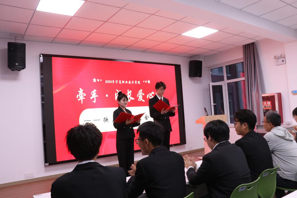 随后,新旧社团负责人交接社团旗帜,标志着第十四届牵手·成长爱心社全体成员正式上任,紧接着新任社团负责人进行了表态发言,他的话语中充满了对前任社团负责人的敬意与感谢,同时也透露出对未来工作的坚定信心,他回顾了牵手·成长爱心社过去的辉煌历程,表示能够接任这一重要职务,他感到无比的荣幸与自豪。