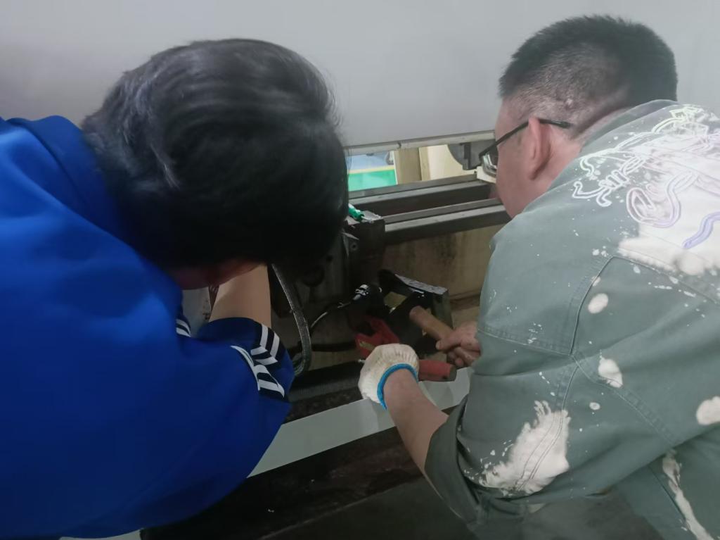 工匠教师刘亮指导员工拆装数控车丝杠座