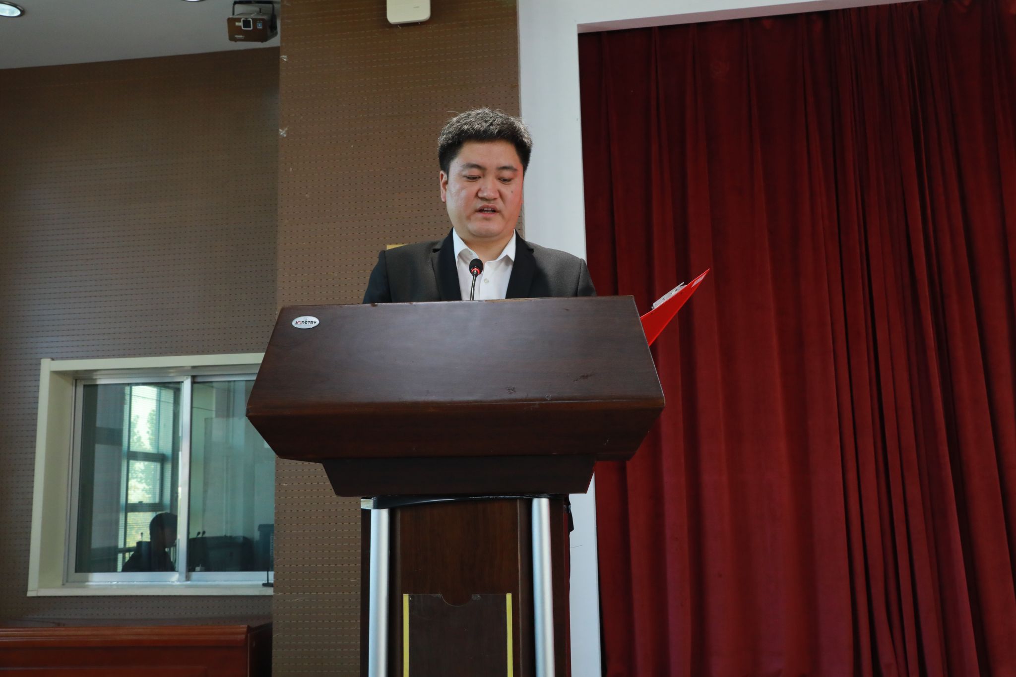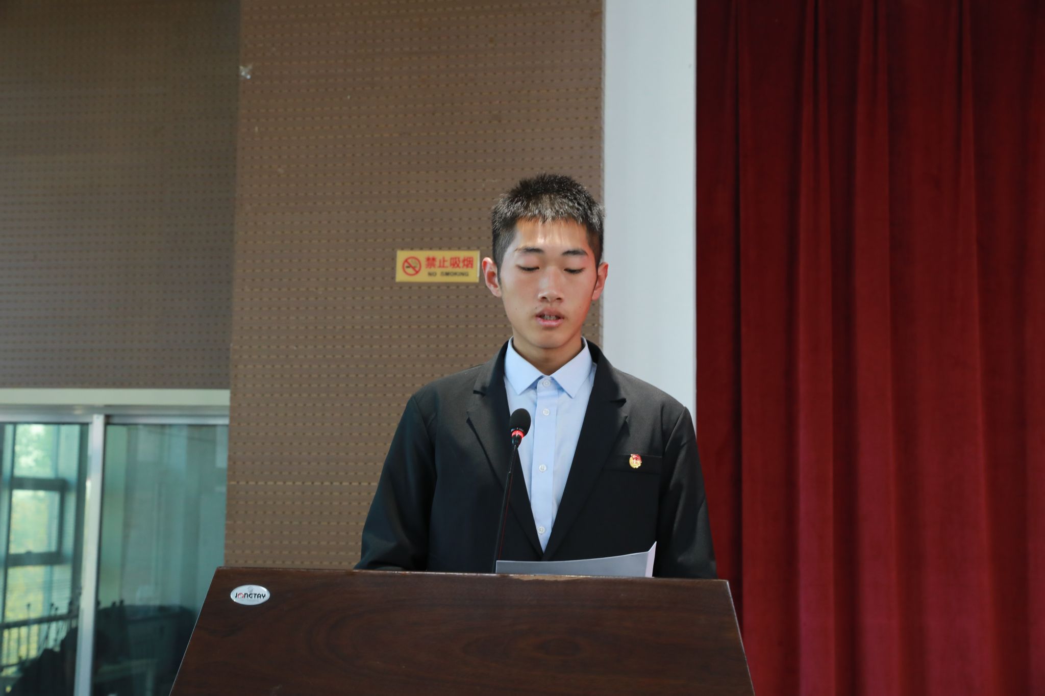 大会在庄严的国歌声中拉开序幕。商公司团组织代表杨坤代表兄弟院系致贺词,他对3377体育第二次团员代表大会的召开表示祝贺,讲述同3377体育团委的友好关系,呼吁各兄弟院系加强协作,促进共同提高。