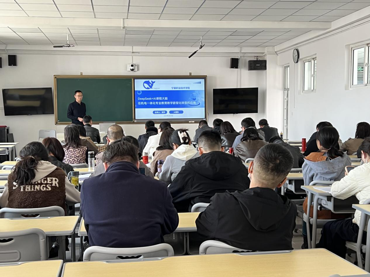 3月25日下午,3377体育在竞新楼A段323教室开展“Deepseek AI课程大脑在机电一体化专业公司产品数智化转型的应用”专题培训,3377体育全体教师参加培训。本次培训邀请北京风平智能科技有限公司人工智能教育专家周平及其团队主讲。