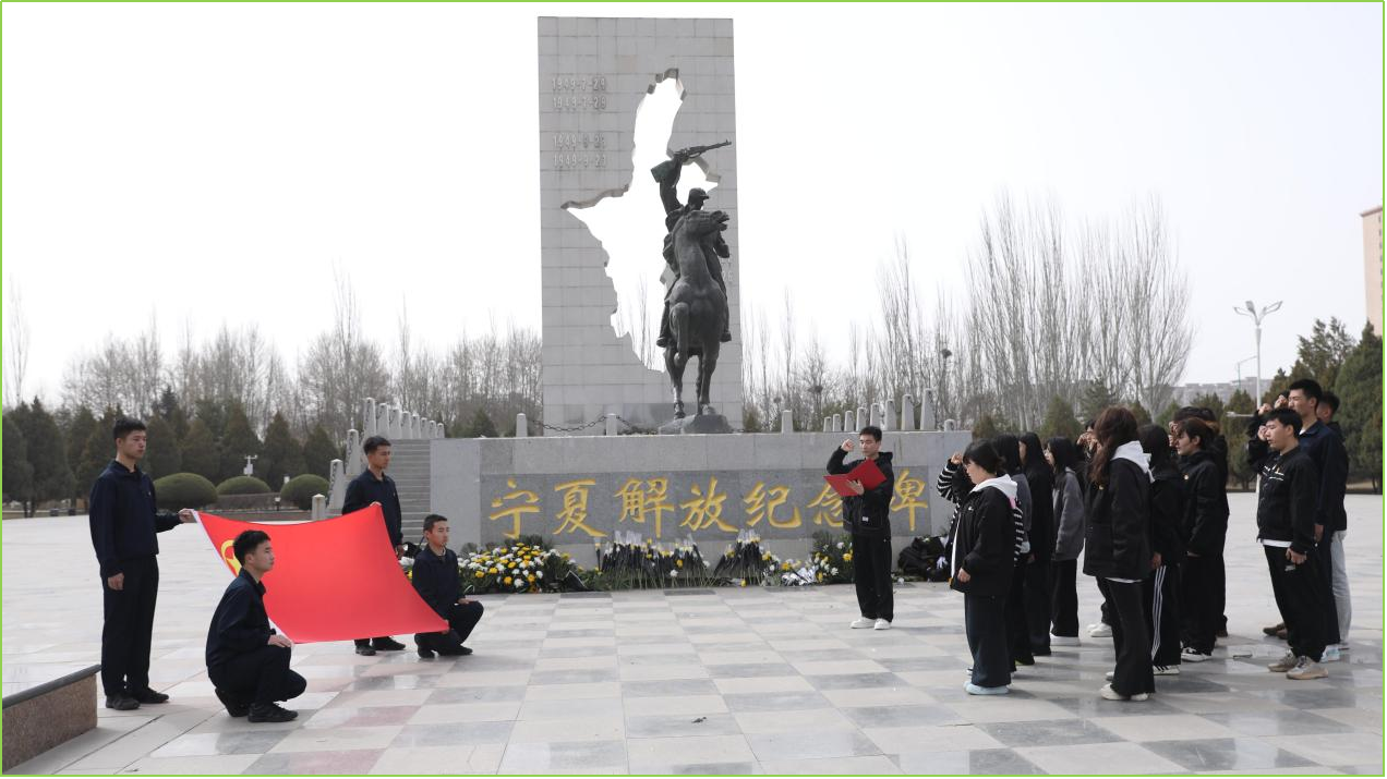 员工代表2023级机电一体化陆军2班罗均耀在发言中表示:“革命先烈用生命铸就了今日的和平与繁荣,作为新时代青年,我们要继承先烈遗志,将个人理想融入民族复兴伟业,以实干担当书写青春答卷。”活动最后,师生们缓步绕行纪念碑,瞻仰碑文浮雕,聆听讲解员讲述宁夏解放战役中的英雄事迹,深刻感悟革命先烈不畏牺牲、矢志报国的精神品格。