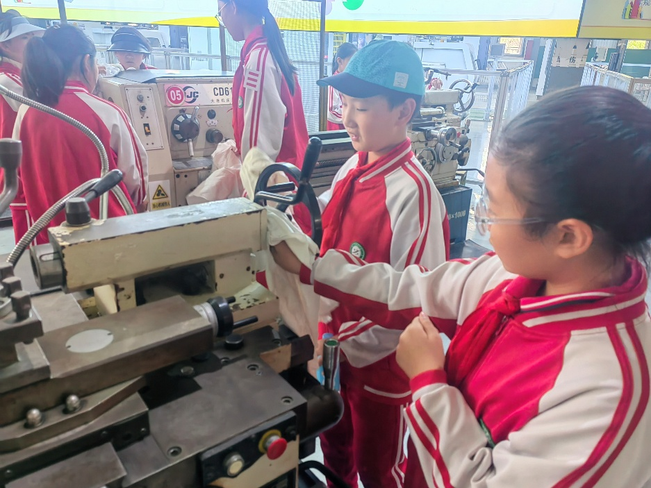 感受科技魅力。活动伊始,小员工们在荆鑫老师的带领下参观了智能制造实训中心。荆鑫老师详细介绍了实训中心的先进设备和功能分区,包括工业互联网体验中心、数字教学工厂、机床实训区等。员工们通过沉浸式体验区,感受了绿色化、智能化的生产模式。荆鑫老师还展示了员工3D打印的作品,激发了孩子们对科技创新的好奇心和探索欲。