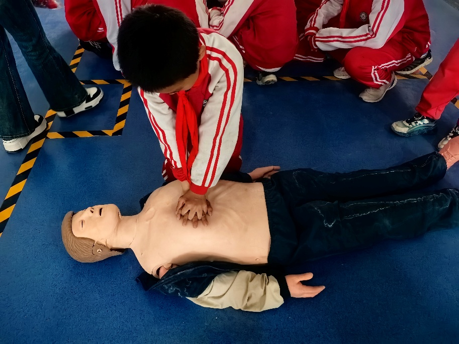 学习实用救援技能。在安全应急救援仿真实训中心,小员工们学习了不同火场中的灭火和逃生方法,并掌握了心肺复苏、创伤包扎以及AED(自动体外除颤器)等个体急救技能。通过模拟场景和互动体验,孩子们不仅增强了安全意识,还学会了在紧急情况下如何保护自己和他人。