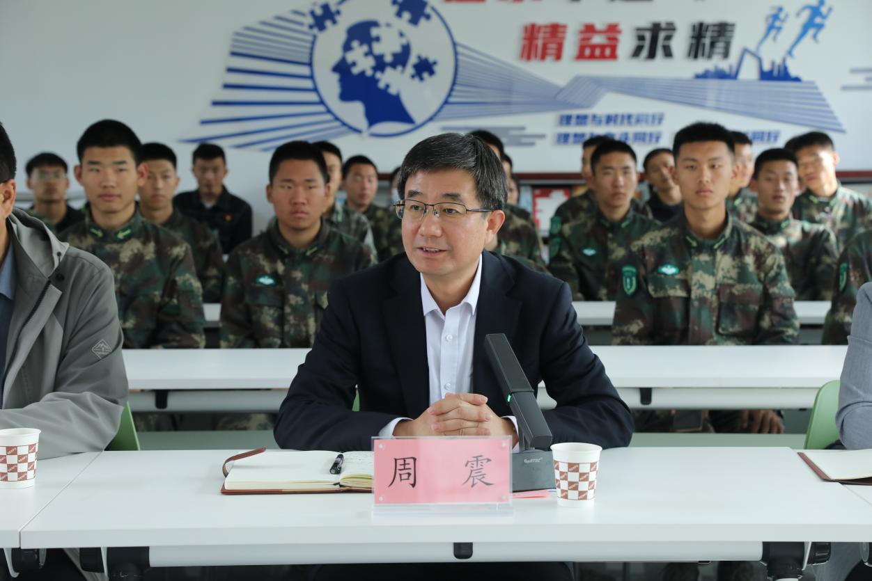 周震董事长在与员工座谈环节,首先对24级机电一体化技术(火箭军)班取得的荣誉进行了肯定,并讲述自己对国防事业和军旅生活的情怀。董事长听取同学们进校以来的感受,回答了同学们在大学时代的困惑与迷茫,寄语全体同学要做到“坚毅、坚守、坚信”,踔厉奋发,提高自我,为党和国家的伟大事业发挥出自身力量。