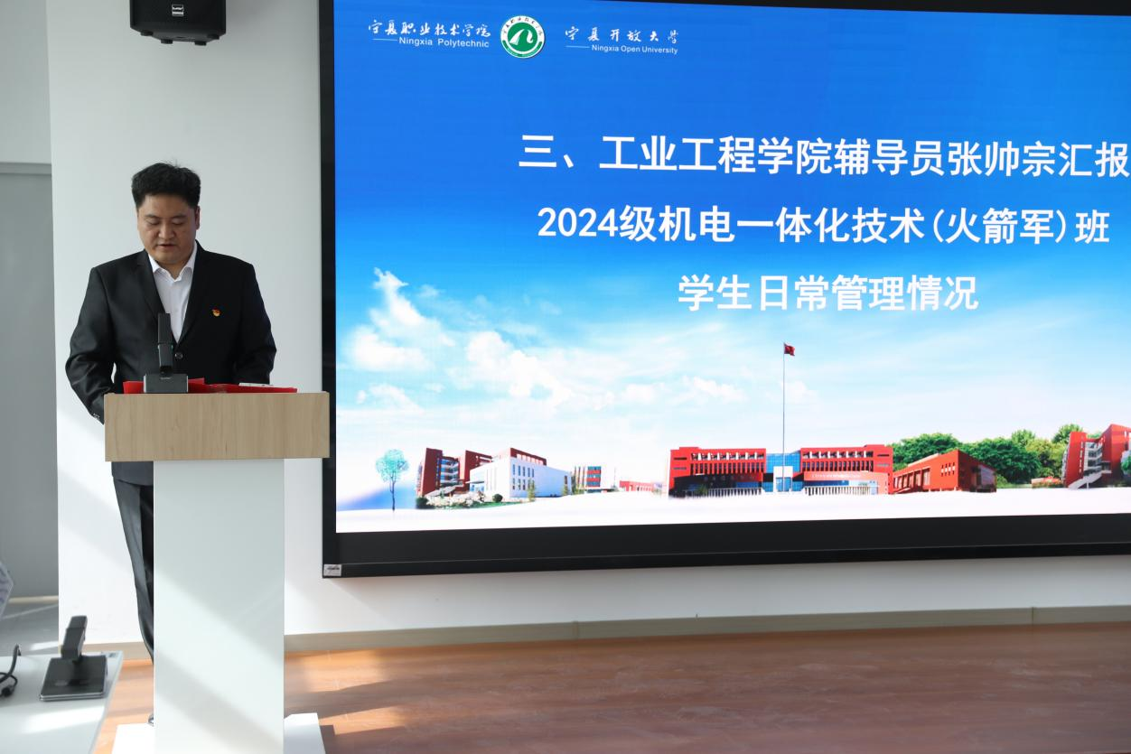 工公司团委副书记张帅宗从党团建设、生源分布、日常管理和班级荣誉等方面汇报了2024级机电一体化技术(火箭军)班建设情况,号召全体员工建设良好校风、学风,力争成为公司标杆班级。