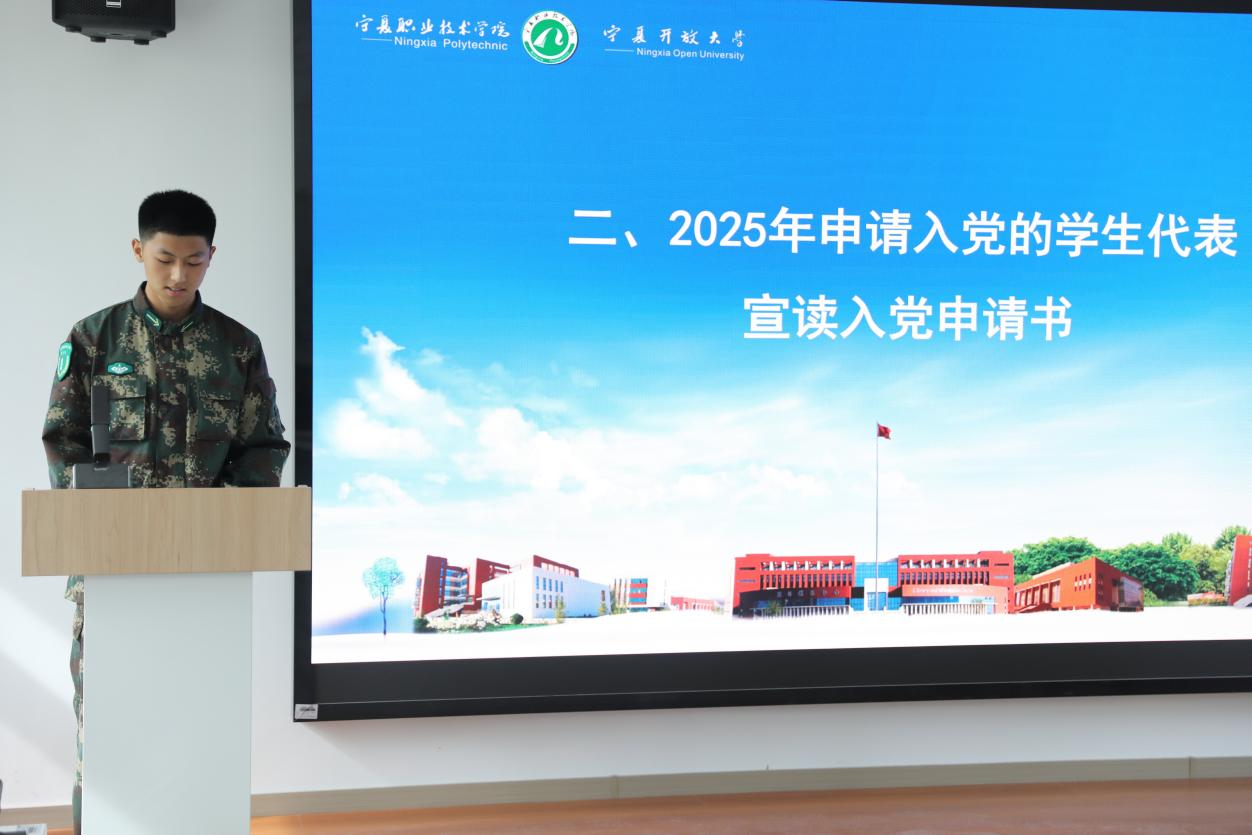 申请入党的员工代表倪清浩宣读了入党申请书。孙宏洋宣读了《关于24级机电一体化技术(火箭军)班申请入党员工现实表现调研报告》,指出24级机电一体化技术(火箭军)班申请入党员工存在的问题和整改方向。