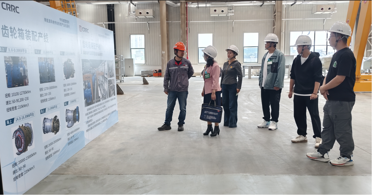 调研组一行来到员工实习工作的风电传动系统装配车间。张凤霞与车间负责人展开深入交流,全面了解实习岗位分配、工作内容及培养计划。在公司生产车间,调研组一行观摩了风电传动系统装配流程,近距离感受智能化生产线与先进制造工艺的魅力。