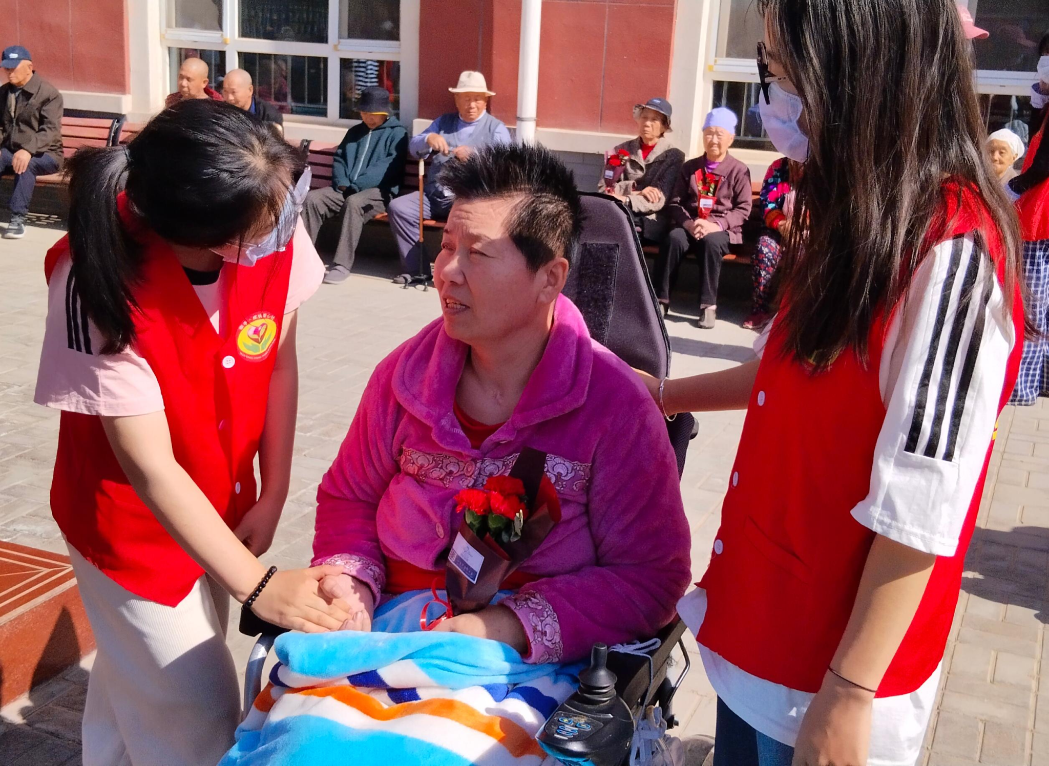 活动当天,志愿者们身着红色马甲,手持鲜花与祝福卡片,为老人们送上节日的问候。一句句暖心的关怀、一张张真挚的笑脸,让许多老人感动不已,纷纷紧握志愿者的手表达谢意。随后,志愿者们带来了一系列精彩的文艺表演:舞蹈《可爱摆》点燃现场欢乐氛围,歌曲《萱草花》传递对母爱的感恩,笛子独奏《大鱼》与吉他弹唱《别怕我伤心》以悠扬旋律抚慰心灵,独舞《一荤一素》用肢体语言演绎亲情的牵挂,合唱《我的祖国》则将家国情怀与母爱深情交织,赢得阵阵掌声。