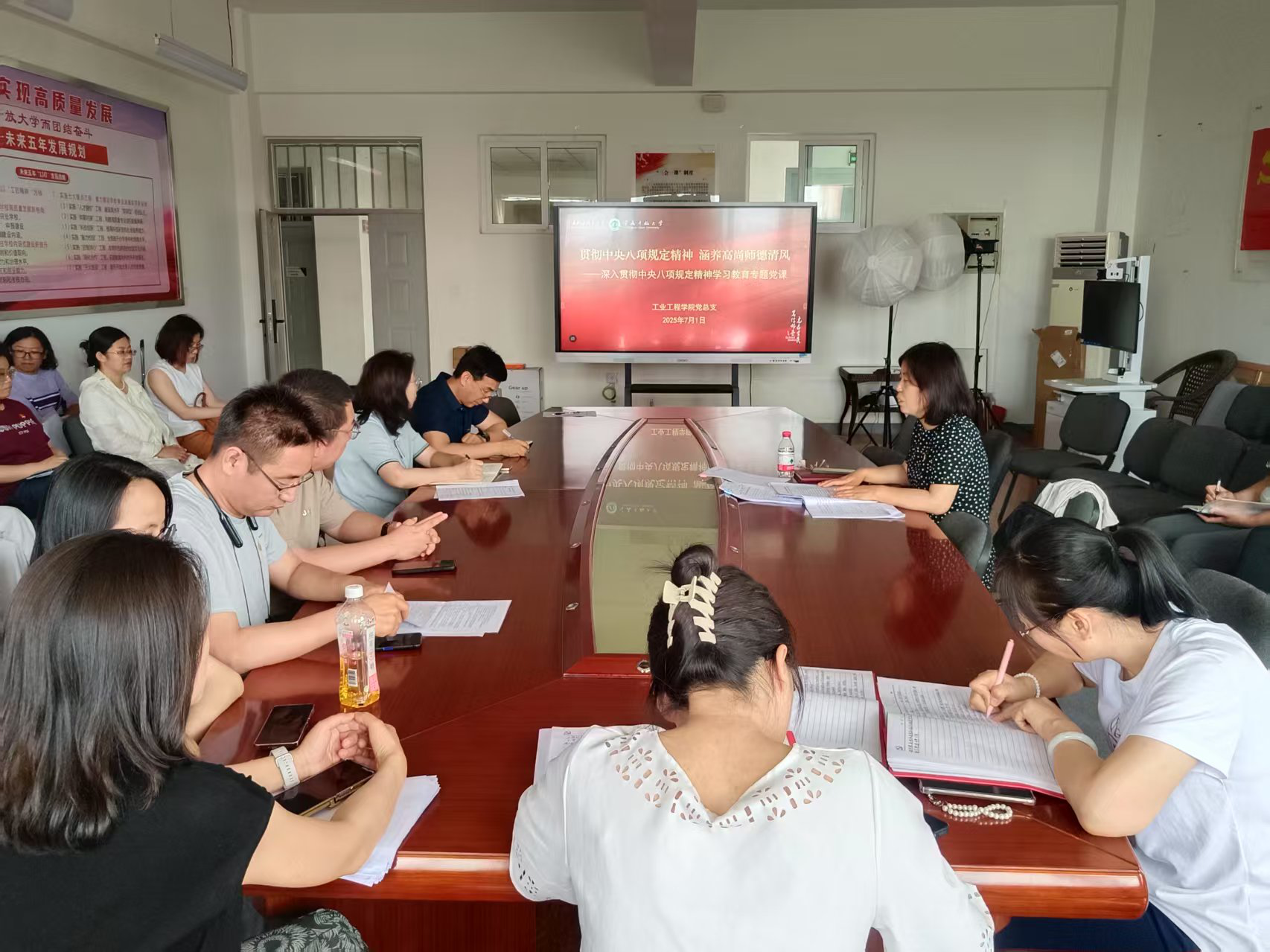 在实践路径方面,许月霞提出了三点建议。首先,要认认真真“学到位”,筑牢思想根基,通过系统学习中央八项规定及相关党内法规,增强贯彻落实的自觉性。其次,要敞开大门“查到位”,对标对表《新时代高校教师职业行为十项准则》和公司《师德师风行为负面清单》,实现精准查摆。最后,扎扎实实“改到位”,确保整改成效,将中央八项规定精神落实到专业建设、人才培养、团队队伍建设等各个方面。
