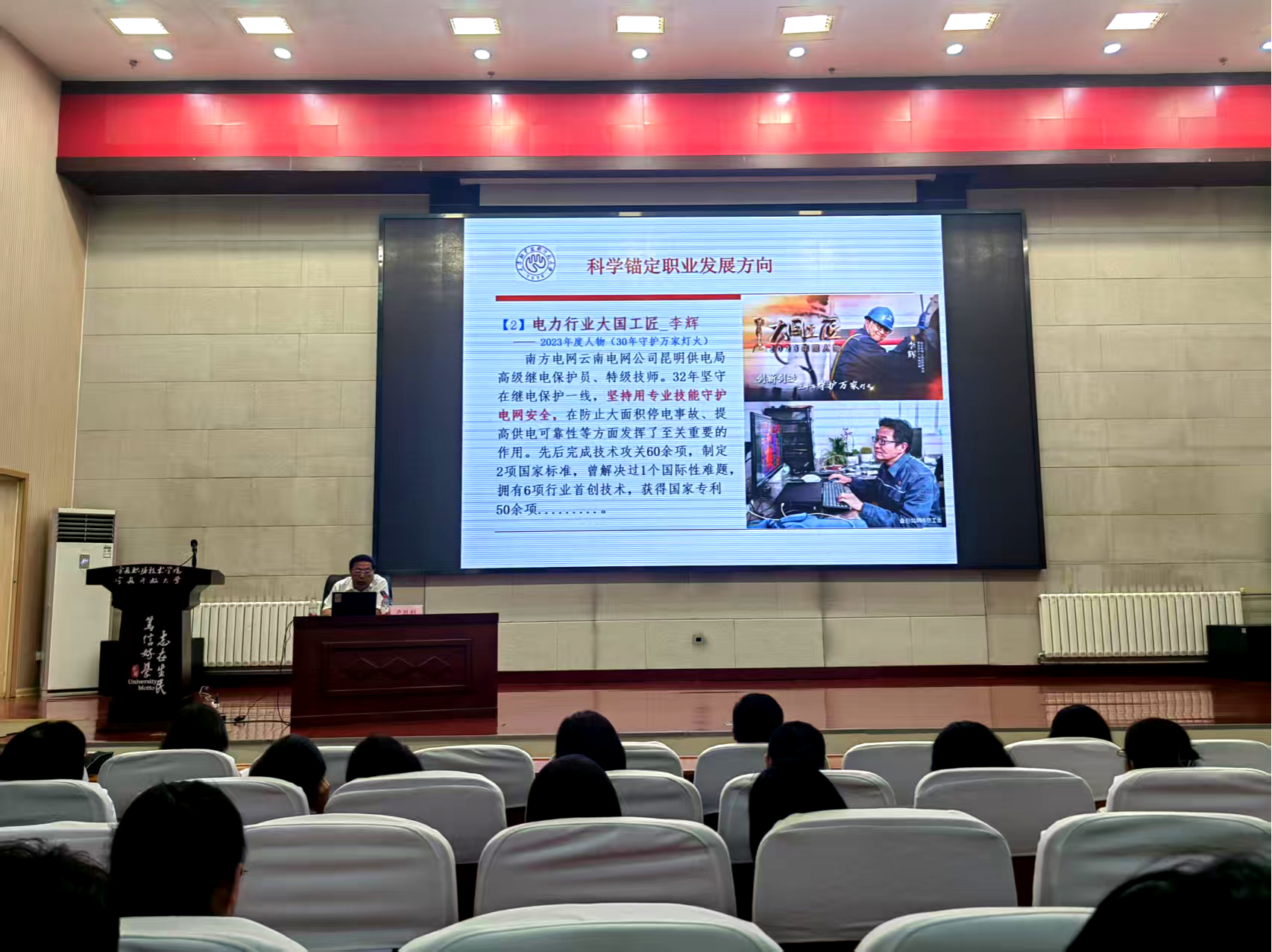 聚焦职业发展,卢胜利教授提出关键:要锚定方向,深入理解国家教育方针战略,把握产业链趋势、熟知岗位需求,结合自身优势与职业偏好确立目标,并介绍高等教育分型发展、“双金字塔”体系及应用型人才培养战略以增信心;要稳步前行,推进产教融合与“五金”建设,员工需学好专业、强化实践,工作之后,应持续学习行业知识、精进岗位技能、积累资质、提升学历、树立终身学习观、善抓机遇、勇迎挑战;要善用AI,在数字化与AI新时代,倡导积极利用AI赋能发展,提升效率与洞察力,但须避免“依赖症”,使其成为辅助决策的“智囊”与“助手”。