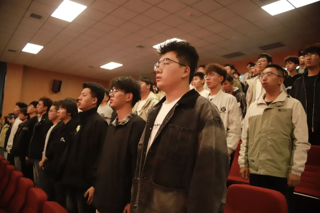典礼在庄严的国歌声中拉开序幕,全体师生庄严肃立,高唱中华人民共和国国歌,雄壮的旋律响彻礼堂,为典礼奠定了庄重而热烈的基调。