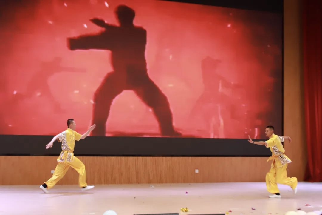 典礼结束后,由公司员工会和老员工艺术团、青春禁毒社联袂打造的迎新晚会精彩上演。晚会融合歌舞、朗诵、武术、器乐、快板等多种形式,深受同学们喜欢,师生携手挥舞荧光棒,将现场气氛推向高潮。