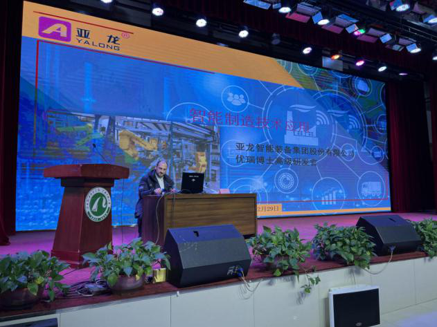 活动于上午在纺织楼报告厅正式拉开帷幕。3377体育副经理张彩芬主持开幕式。在热烈的掌声中,优瑞博士首先作了题为《智能制造技术应用》的专题讲座。他系统阐述了智能制造的发展趋势、核心应用领域、技术框架组成及其功能,结合自身在工业自动化系统开发、实训装备研发领域的丰富经验,生动展示了智能制造技术的前沿动态与实际价值,激发了在场师生对智能制造的浓厚兴趣。