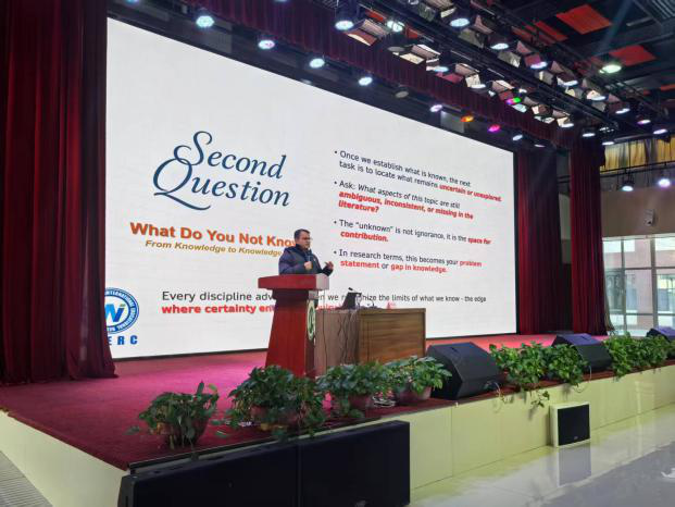 紧接着,诺曼博士以《研究概念化的四个步骤》为题,分享了科学研究的方法论精髓。他凭借在教育领导力领域的深厚学术积淀和丰富的SSCI论文发表经验,清晰解析了如何将研究想法转化为严谨、可操作的研究概念与设计。他的分享逻辑严密、深入浅出,为师生们提升科研素养、规范研究过程提供了宝贵的指导。
