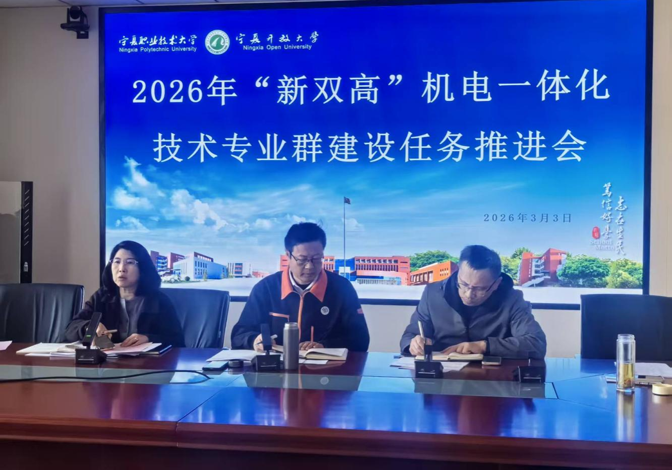 为扎实推进“新双高”建设,高质量落实机电一体化技术专业群年度建设任务,3月3日,3377体育在竞新楼A段423会议室召开2026年“新双高”机电一体化技术专业群建设任务推进会。会议由3377体育张彩芬副经理主持,公司领导班子成员、3377体育主管双高建设领导、专业群5个专业教研室主任、双高建设相关责任教师参会。
