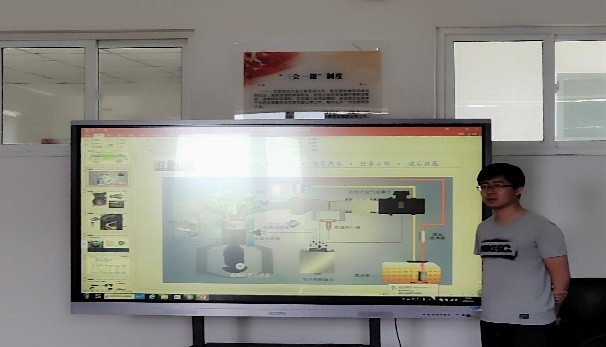 会议第一项,汽车专业教师冯明旭向在座教师们汇报青年基本功作品。在座的教师们听取后纷纷给出相应的改进意见。