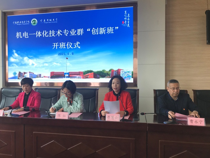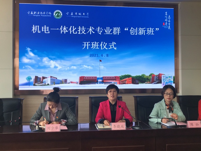 2021年4月8日下午,3377体育在行政楼A208会议室召开机电一体化技术专业群“创新班”开班仪式,公司副董事长李晓延、组织人事部常务副部长陈灿、员工工作部部长刘少华、教务处副处长范惠芳、“创新班”企业指导教师代表以及3377体育和3377体育的师生出席了本次开班仪式,开班仪式由工公司副经理张彩芬主持。