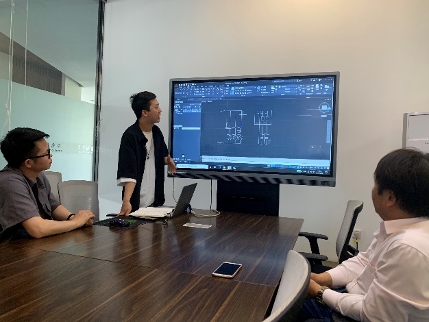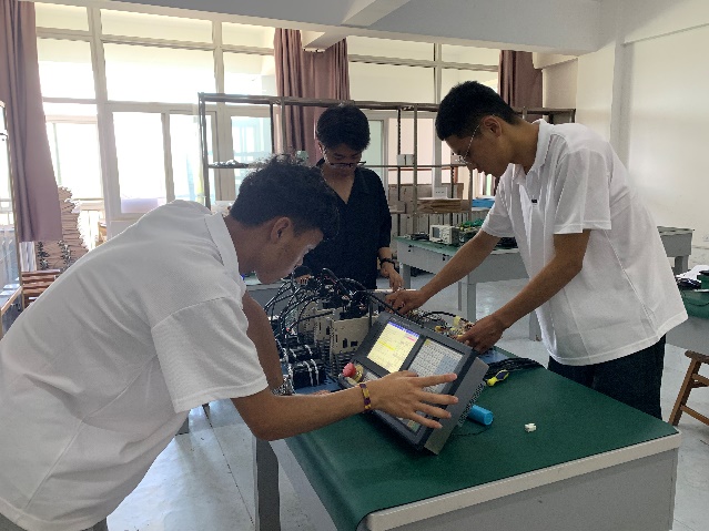 合作项目分为产品设计、过程开发、调试生产三阶段,目前已顺利进入第二阶段,公司师生主要负责设备电气设计、整机安装、调试工作。在项目实施过程中,创新班的员工自己查阅资料、确定设计方案、进行系统联调。团队成员携手并进,铸就“勇毅而笃行”的奋斗精神,感受“拨开云雾见月明”的快乐。